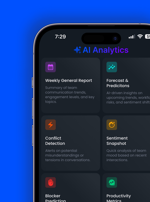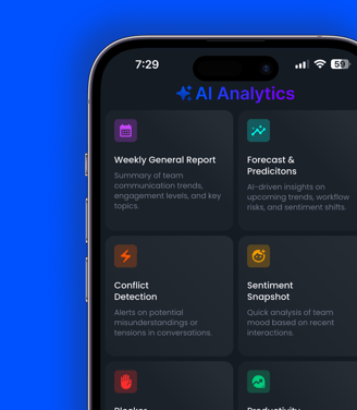 Harness the power of konntext's advanced AI analytics to proactively detect conflicts, forecast workflow issues, measure team sentiment, and unlock deep insights into your team's productivity and collaboration. Take action, prevent risks, and empower your decision-making.